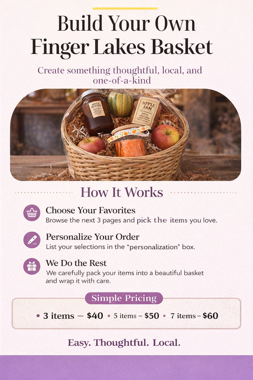 Our community is rooted in scenic lake life, rolling vineyards, charming towns, and a deep spirit of adventure. From hiking trails and harvest festivals to boat days and artisan markets, there’s something special here, and it shows in everything we do. Our marketplace offers a taste of the Finger Lakes, handcrafted by those who call it home.