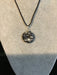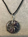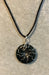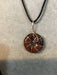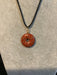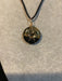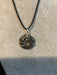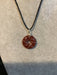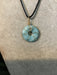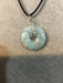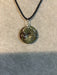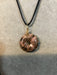 Wire wrapped gemstone donut on 18" black satin adjustable cord.