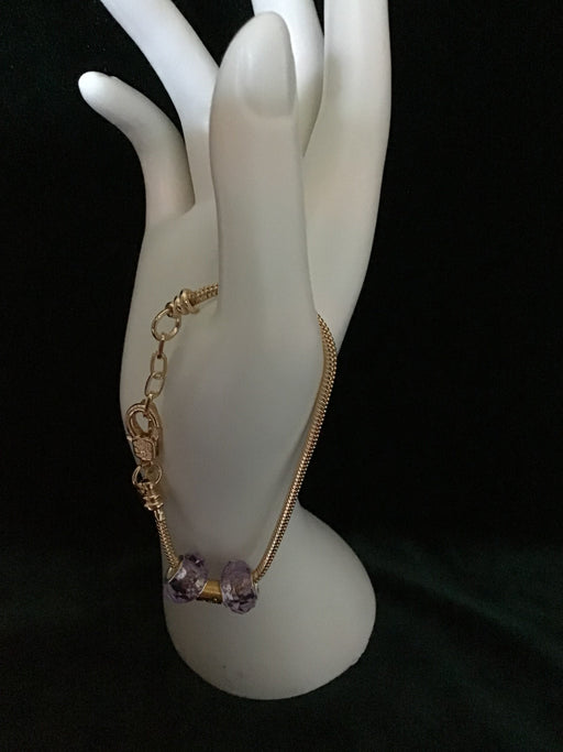 WM Unique DesignsBeautiful gold adjustable snake bracelet with lavender glass beads and a gold January zodiac tube bead.