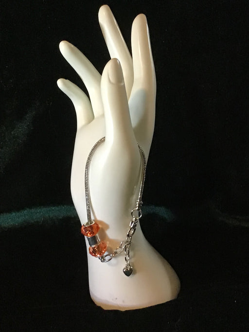 WM Unique DesignsBeautiful silver adjustable snake bracelet with orange faceted glass beads and a Virgo zodiac bead in the center,