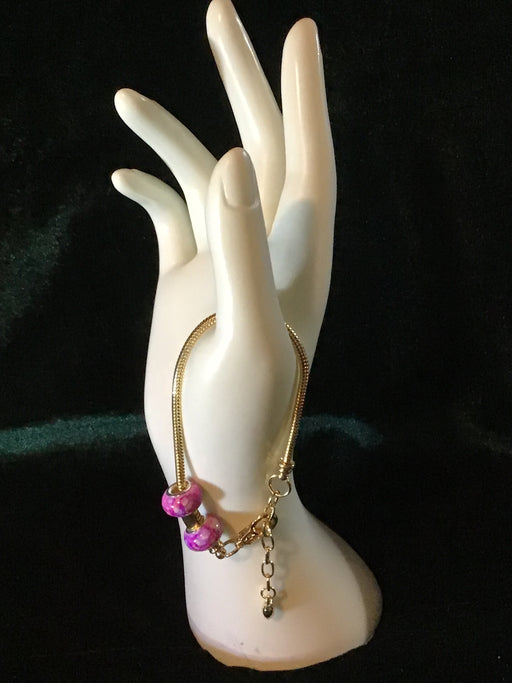 WM Unique DesignsBeautiful gold adjustable snake bracelet with hot pink and purple glass beads with September zodiac bead in the center.