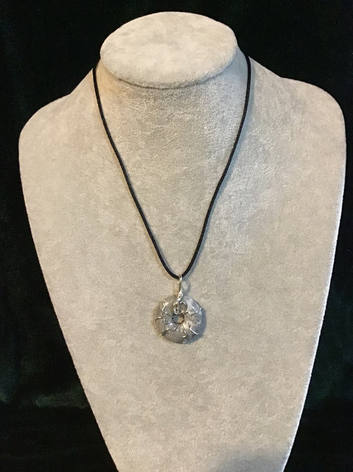 Original price $0.00 - Original price $0.00Original price $0.00$12.00$12.00 - $12.00Current price $12.00Wire wrapped gemstone donut on18" black satin adjustable cord.