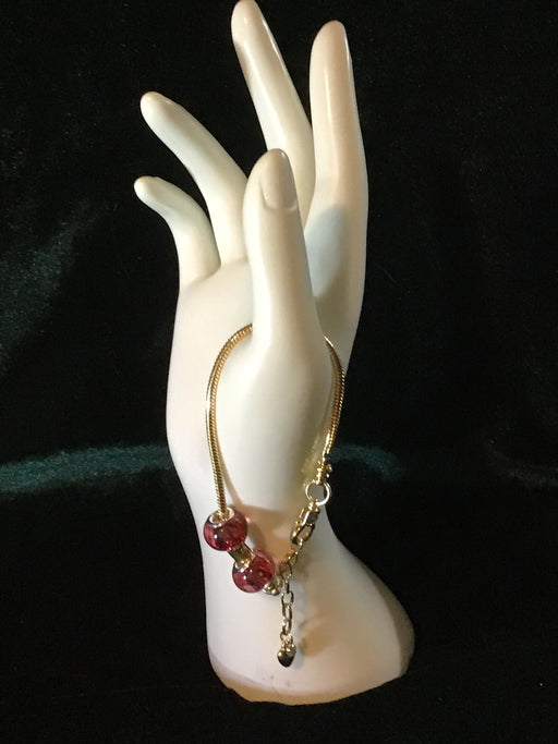WM Unique DesignsBeautiful gold adjustable snake bracelet with light red translucent glass beads and a Libra zodiac bead in the center.