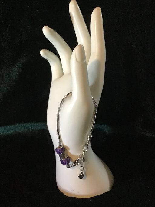 WM Unique DesignsBeautiful silver adjustable snake bracelet with purple faceted crystal glass beads and a Libra zodiac bead in the center.