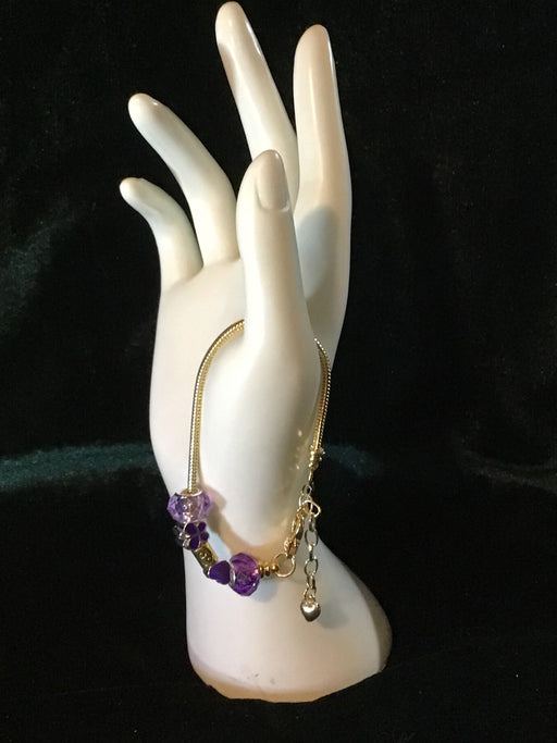 WM Unique DesignsBeautiful gold adjustable snake bracelet with lavender faceted bead and purple faceted bead, a purple flower bead and a purple hear bead with a Sco...