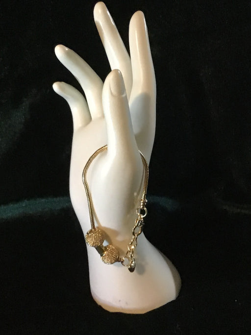 WM Unique DesignsBeautiful gold adjustable snake bracelet with clear black glass beads with tan flowers inside and a Libra zodiac bead in the center.