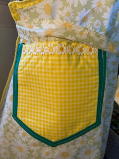 Bright, sweet, and full of charm, this handmade apron is crafted from delightful daisy-patterned fabric that brings a touch of sunshine to any task...