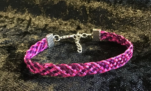 WM Unique DesignsBeautiful hand-woven bracelet using the Japanese wire weave method consisting of 24ft. of magenta and silver wire with a silver chain and lobster c...