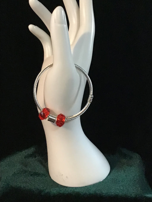 WM Unique DesignsBeautiful hand-woven silver adjustable Japanese weave snake bracelet with red orange faceted glass beads with a Pisces Zodiac bead in the center.