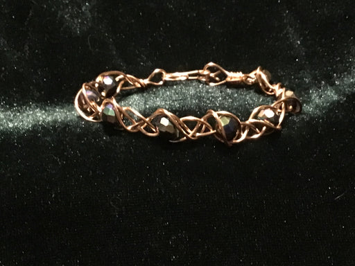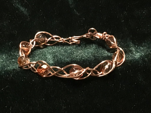 WM Unique DesignsBeautiful handmade cuff bracelet with rose colored wire and clear faceted glass crystals.