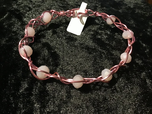 WM Unique DesignsBeautiful hand twisted cuff is made with pink wire and has milky pink faceted glass beads.