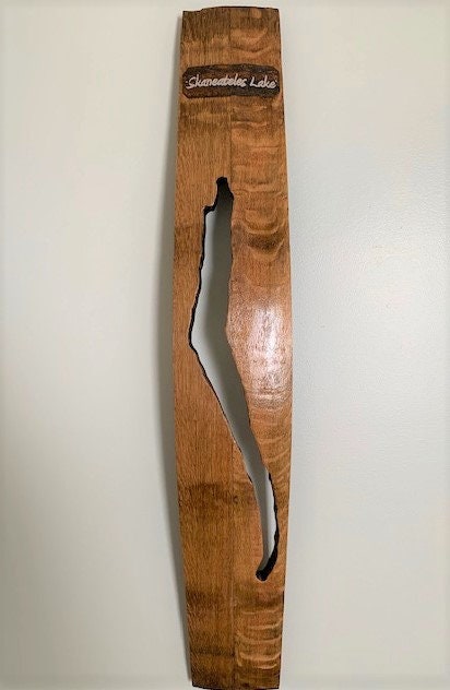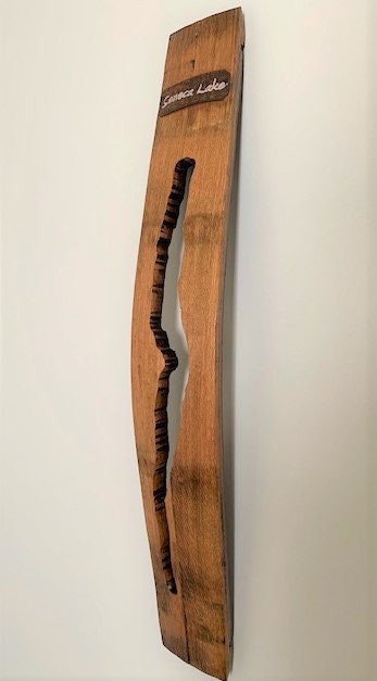 Wine Country Barrel ArtThe shape of Skaneateles Lake has been carved out of oak barrel staves to create a rustic wall hanging. The lake cutout has been attached to the i...