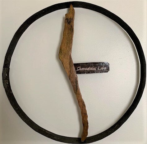 Wine Country Barrel ArtThe iconic shape of Skaneateles Lake has been carved out of oak barrel staves to create a rustic wall hanging. A plaque displaying "Skaneateles La...
