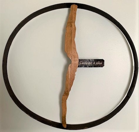 Wine Country Barrel ArtThe shape of Seneca Lake has been carved out of oak barrel staves to create a rustic wall hanging. The lake cutout has been attached to the inside...