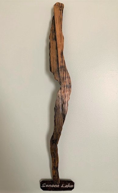 Wine Country Barrel ArtThe shape of Seneca Lake has been carved out of oak barrel staves to create a rustic wall hanging. A plaque displaying "Seneca Lake" is attached t...