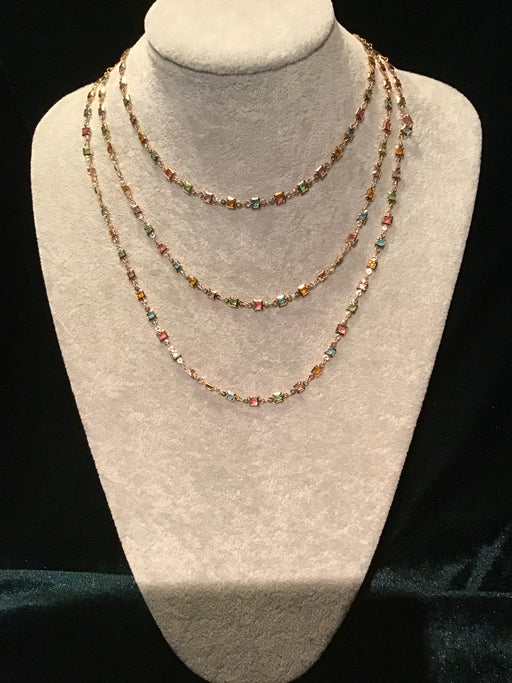WM Unique DesignsBeautiful 3 strand chain necklace with multicolored crystals and magnetic tube clasp for easy on and off.