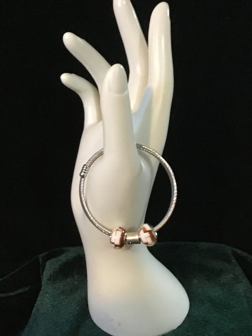 WM Unique DesignsSilver snake bracelet with cream and brown glass beads and a Scorpio zodiac center bead.