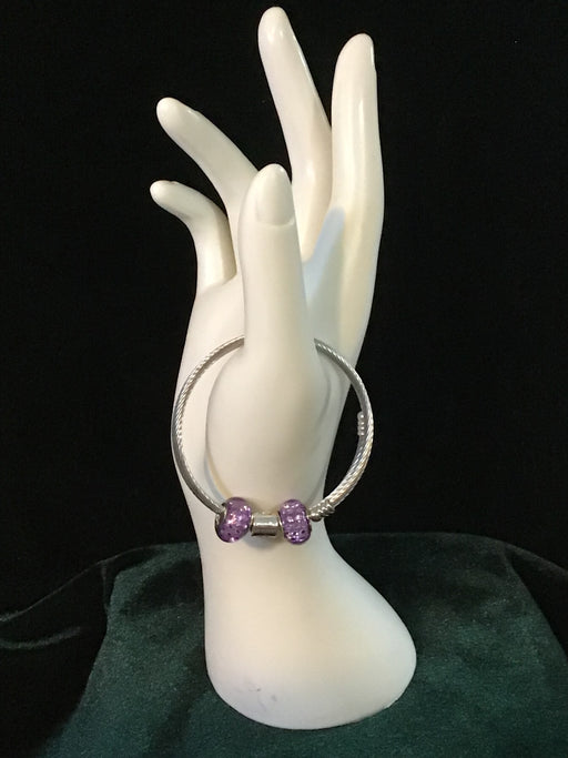 WM Unique DesignsSilver snake bracelet with purple faceted glass beads and a Gemini zodiac bead.