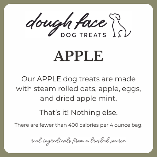 Dough Face Dog TreatsA simple, everyday treat made with real ingredients you can feel good about. Our APPLE Dog Treats are oven-baked in small batches using just oats, ...