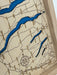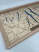 The Base Layer, painted in a beautiful Finger Lakes Blue is set underneath the Map Layer to give depth and dimension to the piece.  And many of the lakes also have Bathymetric Layers engraved into the Lake Blue layer to add even more beauty and interest.