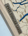 At the bottom of the Map Layer is a beautifully engraved Walnut accent piece engraved with the words "The Finger Lakes".  Finally, wrapping this piece is a solid oak frame sanded super smooth.