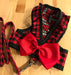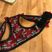 Here is a contemporary Buffalo plaid step-in harness for your proud pup. Great for daily outings with your favorite pet. Buffalo plaid outer fabric with pup playful lining, hook and loop closure at neck and waist. Ruffle around the neckline and Double D-ring for leash. Washable cotton, lined. Free shipping in USA. NOTE: Harness only. Order leash as a separate item.