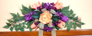 Pretty Spring wall swag decorated with coral and purple tulips and complimented with burlap bow.