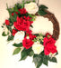 Beautiful 10- inch grapevine wreath with red and white roses. Adorned with red and white flowers. Would look perfect on your front door or hang on an empty wall in your living room.