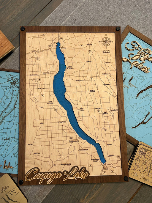 Victor Wood ForgeBathymetric Cherry Finger Lakes Map Celebrate the natural beauty of New York's lakes with our handcrafted bathymetric maps featuring premium Cherry...