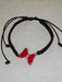 Hand woven black macrame bracelet with red crystal butterfly.
