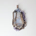 I don't normally see much Chalcedony (blue agate) so this is a pretty cool piece to me! It's technically a slice of chalcedony and very opaque, I did a small design on the back so it shows through a little. I accented the frame of the stone with both Tanzanite and amethyst!