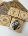 These Lord of the Rings inspired coasters are laser engraved on a glossy, water-resistant birch wood and have a cork bottom to make them perfect to put in use as drink coasters. Purchase individually or as a set for your favorite Lord of the Rings fan!