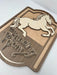 This 4-Layer Prancing Pony sign made from MDF (back layer), Cherry, Maple and Walnut makes a fantastic gift for the Middle Earth fan. As I could not decide which version I liked best (either the Maple Horse or Walnut Horse), I leave the decision to you.