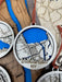 Each of these unique laser-engraved ornaments has three layers: the Town name and major roadways, a street layer, and finally, the deep cobalt blue lake layer.
