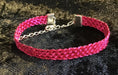 Beautiful hand-woven bracelet using Japanese weave method consisting of 24ft of Fuchsia wire with silver chain and lobster clasp making it easily adjustable.