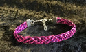Beautiful hand woven adjustable bracelet using Japanese weave method consisting of 24ft of fuchsia and purple wire with silver chain and lobster clasp making it easily adjustable,