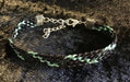 Beautiful hand-woven bracelet using Japanese weave method consisting of 24ft of black and light green wire with silver chain and lobster clasp making it easily adjustable.