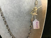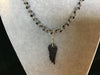 Handwoven chain consists of 21ft of silverplate wire with approx. 200 dark grey and black faceted glass crystals individually woven into chain. Pendant is hand carved gemstone Palm Root from Bali, Indonesia. Toggle is Tibetan silver flower.