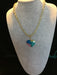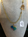 Hand woven chain consists of 21 ft. of gold silverplate wire with approx. 200 pale green and clear faceted glass crystal individually woven into chain. Gemstone heart is Rainbow Agate, hand carved from Bali, Indonesia. Gold colored Tibetan Silver flower toggle.