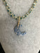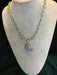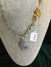Beautiful hand-woven gold chain consisting of 21ft of gold colored silver plate wire with 250 white and blue faceted crystals individually woven into chain. The toggle is a gold Tibetan grape leaf toggle.