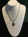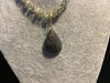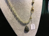 Hand woven chain approx. 20-21" in length consists of 21 ft. of champagne colored silverplate wire with 200 color matching crystals individually woven into chain. The pendant consists of a teardrop shaped Labradorite, Beautiful heart shaped locket toggle completes this piece made from gold colored Tibetan Silver.