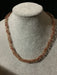 Hand woven chain consists of 21 ft of gold colored silverplate wire with 200 pale pnk and rose colored facet glass crystals individually woven into chain. Gold colored circle toggle.