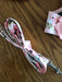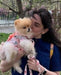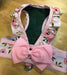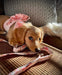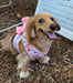 Delightful step-in harness for your sweet little girl. Two d-rings and Hook and loop closures give you a secure closure for walks about town. The harness is finished with a grosgrain bow and our signature charm—Sweet as can be! Custom sizes when you send your pet’s measurements. COLORS: Peach pink Purple daisy Accessories: Matching leash. “Hi Sue thank you so much! I’m really enchanted with the set! It is exactly what I was looking for. My pup is gorgeous!!! I don’t have enough words to thank you! I just want to tell you that your work is really made with love!!! Thank you Sue!!!”- Gislaine O., April 2021
