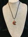 Beautiful gemstone Gold Red Sandstone crescent moon on a black satin cord with a silver extender chain and lobster clasp.