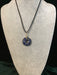 Wire wrapped gemstone donut on18" black satin adjustable cord.