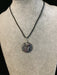 Wire wrapped gemstone donut on18" black satin adjustable cord.