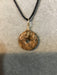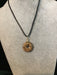 Wire wrapped gemstone donut on18" black satin adjustable cord.