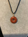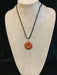 Wire wrapped gemstone donut on18" black satin adjustable cord.