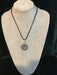 Wire wrapped gemstone donut on18" black satin adjustable cord.