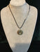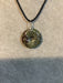 Wire wrapped gemstone donut on18" black satin adjustable cord.